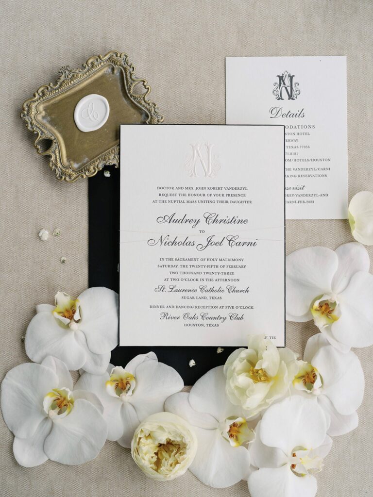 As Houston’s premier wedding destination, we aim to be your trusted partner in creating a truly memorable and personalized celebration. With a wide range of services from exquisite custom bespoke invitations to personalized party goods, our team (including our four expert stationers) are dedicated to helping you set the perfect tone for your big day, ensuring that every detail reflects the unique essence of your love story.