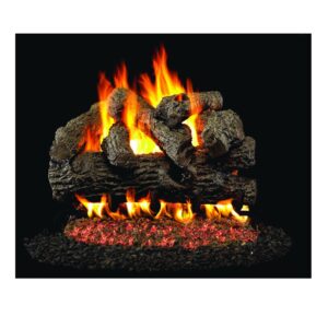 Set Includes: 30″ Charred Oak Logs, Burner Pan, Sand, Embers, Fuel Line & Grate.