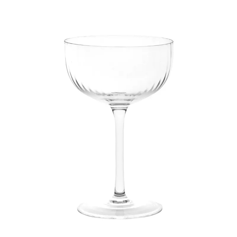 This stunning coupe glass is a masterclass of mouth blown artistry, with a faceted effect that shimmers in the light atop a sophisticated stem that’s accented with intricate details at the base. The understated elegance of this chic glass makes it perfect for everyday sipping and special occasions alike.